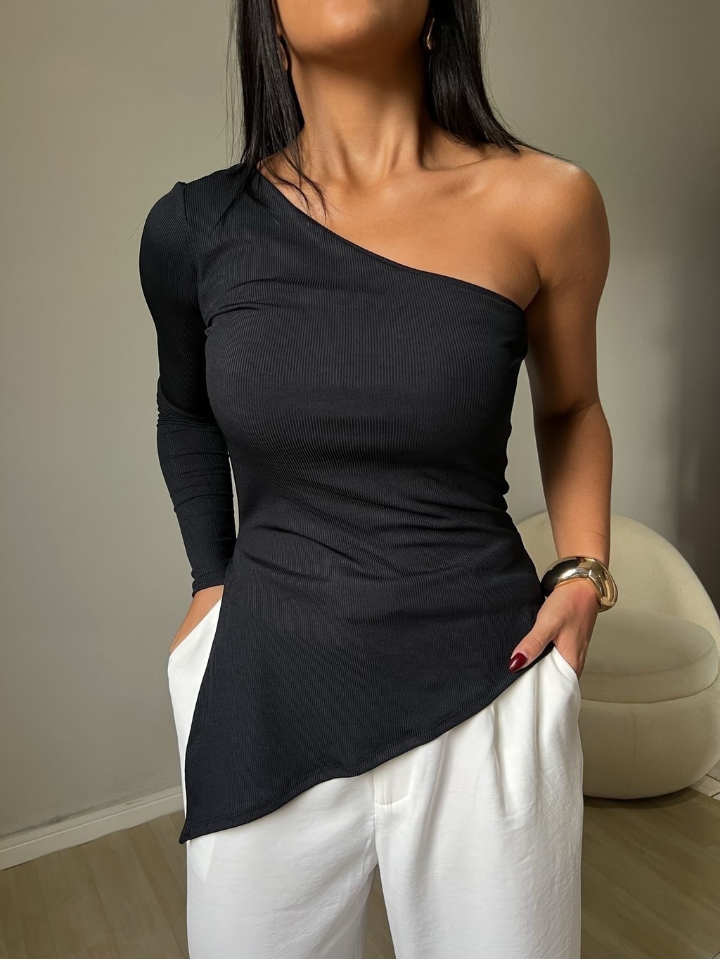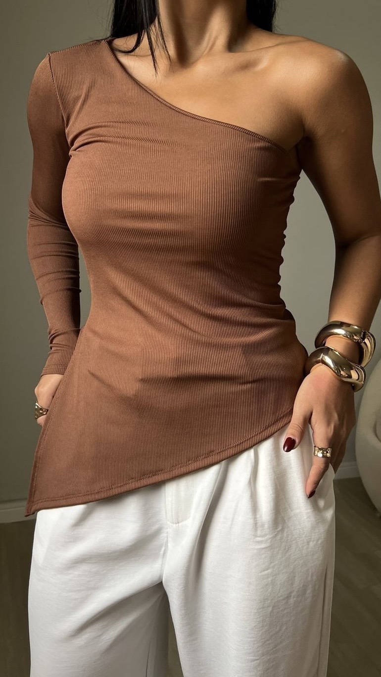 O design assimétrico com um ombro só deixa o look mais ousado e contemporâneo, ideal para compor produções casuais ou sofisticadas com um toque fashionista. Combine com saias, calças ou shorts e destaque-se em qualquer ocasião.