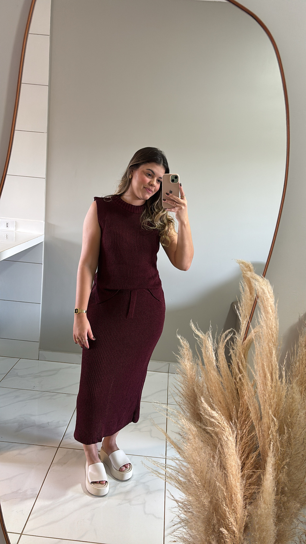 Nosso conjunto Anastácia em tricô traz a combinação perfeita entre elegância e praticidade. A blusa tem modelagem versátil, fácil de combinar, enquanto a saia com fenda traseira garante um toque de sensualidade na medida certa.
